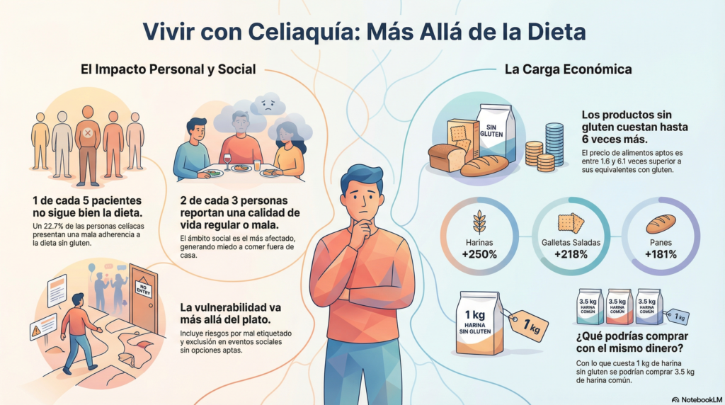Como sintetiza la conclusión de la investigación, vivir con celiaquía y seguir una dieta sin gluten tiene un impacto negativo en la calidad de vida, no solo por el sobrecoste económico, sino también por las restricciones sociales y la carga psicológica que implica navegar un entorno que, en muchas ocasiones, no está preparado para garantizar la seguridad alimentaria de este colectivo.