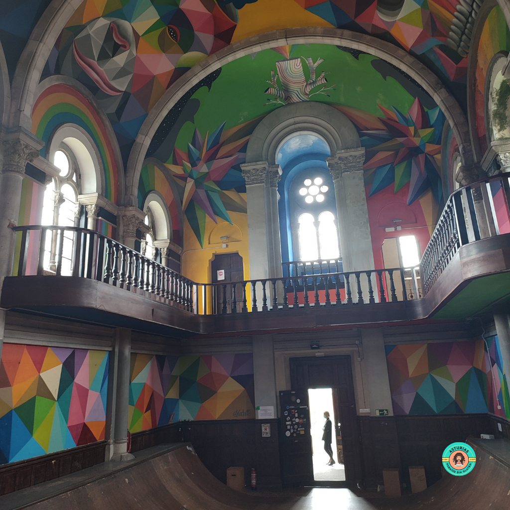 Hoy te enseño la «Iglesia Skate» la pequeña capilla sixtina de Asturias, pintada por el artista Okuda San Miguel.