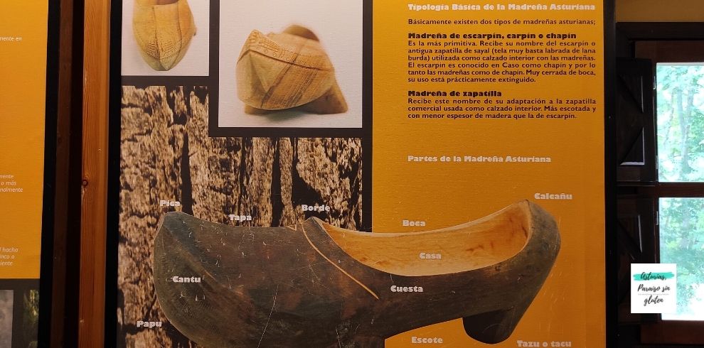 En el primer piso, a mano izquierda de la escalera, podemos hacer un viaje el el tiempo y por el mundo, ya que encontraremos una amplia colección de 30 pares de madreñas de diferentes regiones de Europa. Además de los 11 paneles explicativos, la estancia se completa con una exposición de herramientas utilizadas por el madreñero.