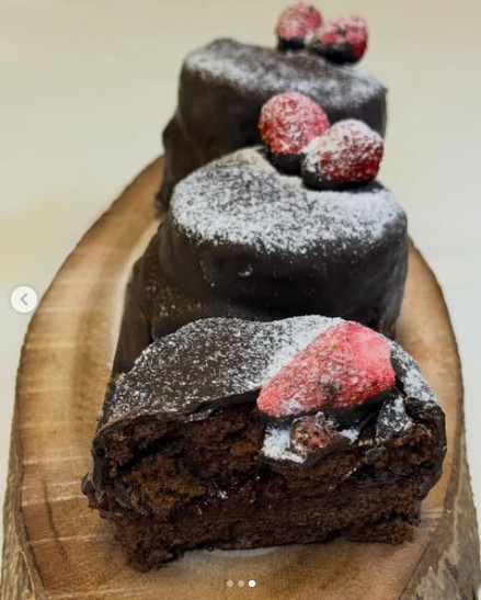 Han hecho además un par de elaboraciones especiales por San Valentín: Corazón de queso, fresas y chocolate blanco (contiene lactosa), bombones de corazón y uno de los favoritos, merengue, en forma de corazón y relleno de fresas .